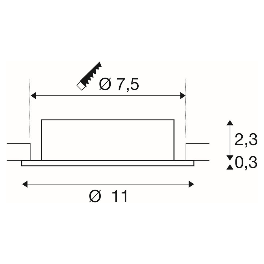 The recessed ceiling light NEW TRIA® 75 XL is a round light with a maximum power of 10W and an operating voltage of 220-240V~. It has a built-in depth of 6.5cm and a built-in opening circle Ø of 7.5cm. The light has protection class IP20 and weighs 0.14kg.
