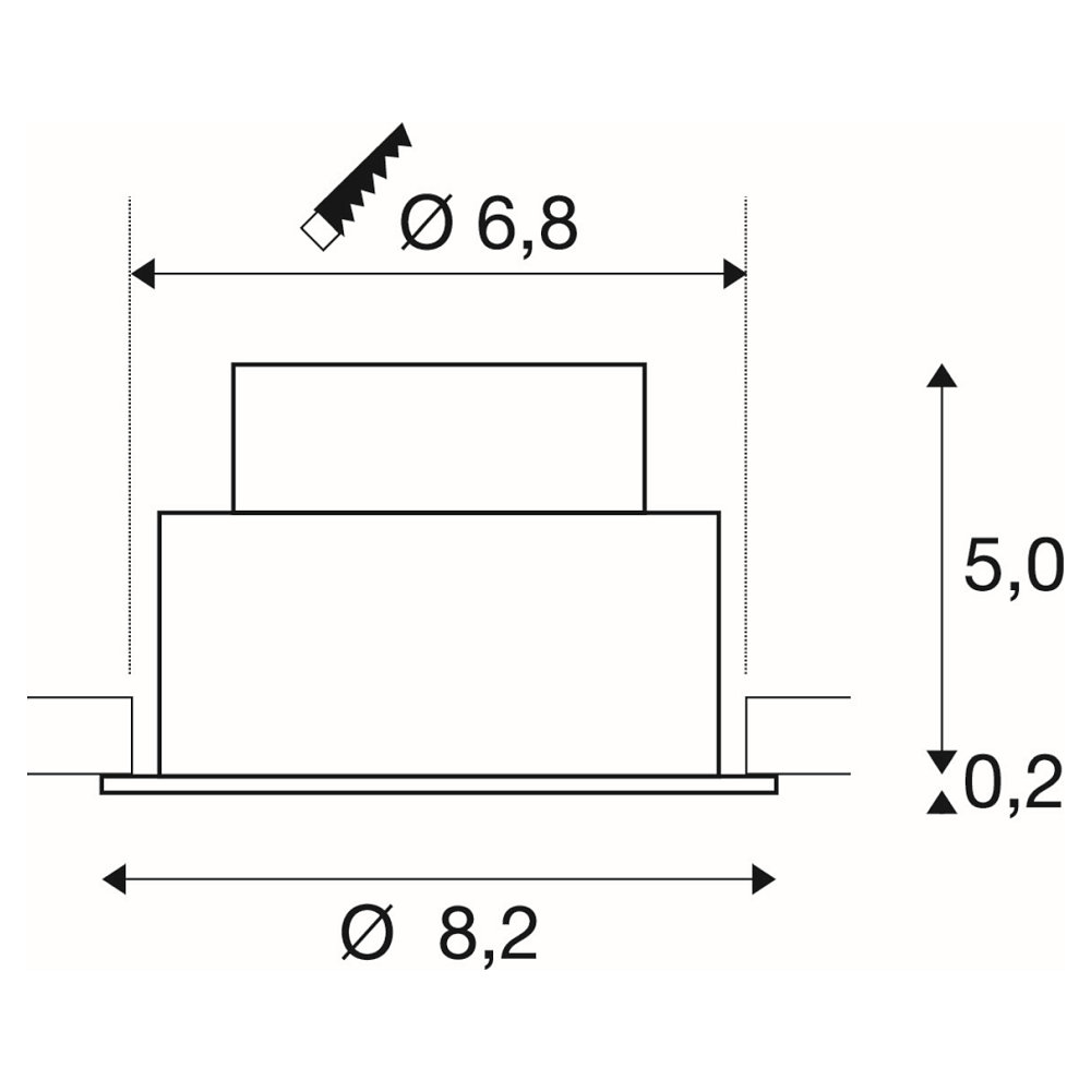 The recessed ceiling light is easy to install and can be mounted in a cutout with a diameter of 6.8 cm. With a depth of 5.5 cm, the light fits into many different spaces. The housing is made of aluminum, ensuring a robust and durable construction.