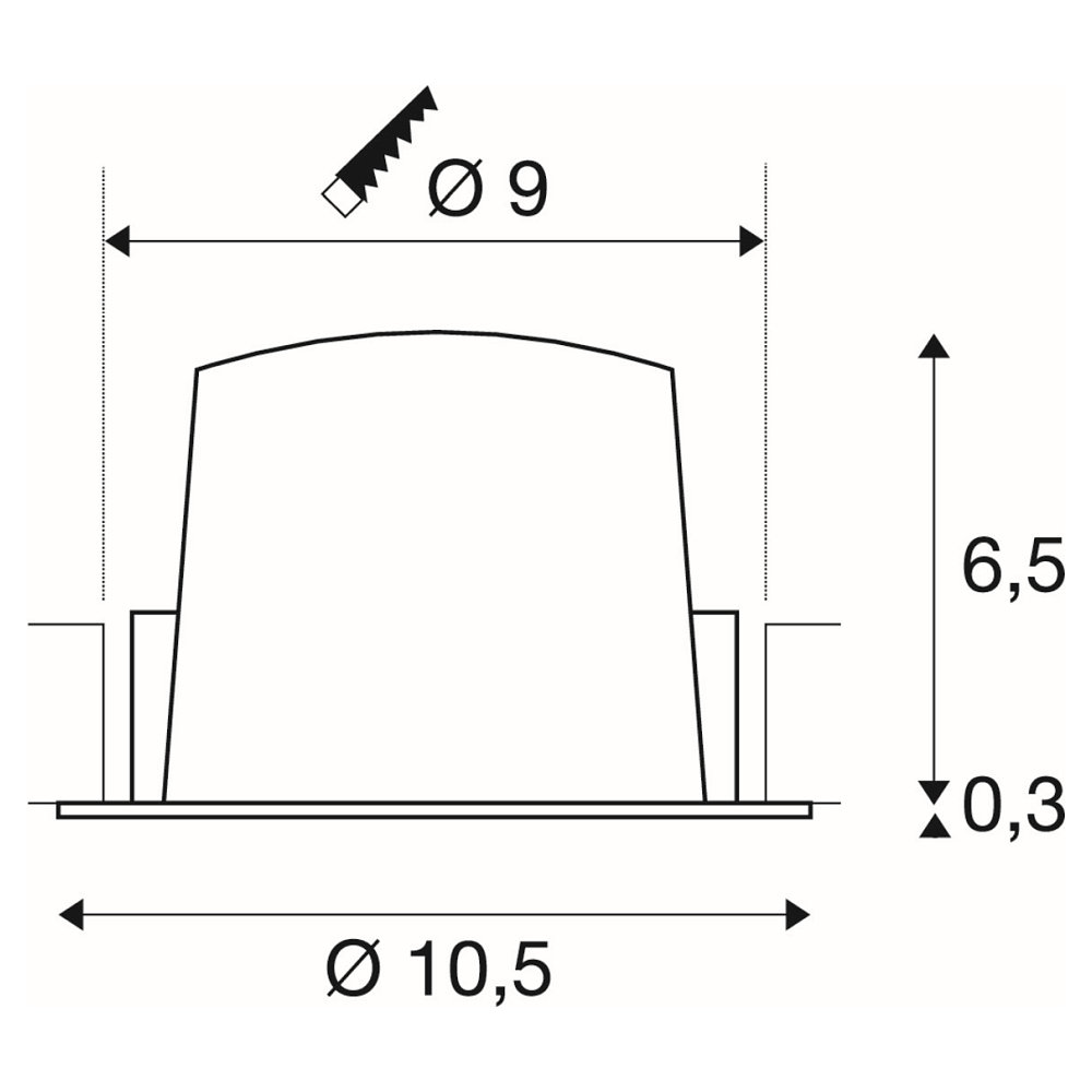 With a diameter of 10.5 cm and a height of 6.8 cm, the luminaire is compact and unobtrusive. The installation depth is 7.5 cm, and the required installation opening has a diameter of 9 cm. The low weight of only 0.22 kg further simplifies mounting. Protection class 3 as well as IP20 rating ensure safe use, while the non-adjustable design simplifies installation and provides stable illumination.