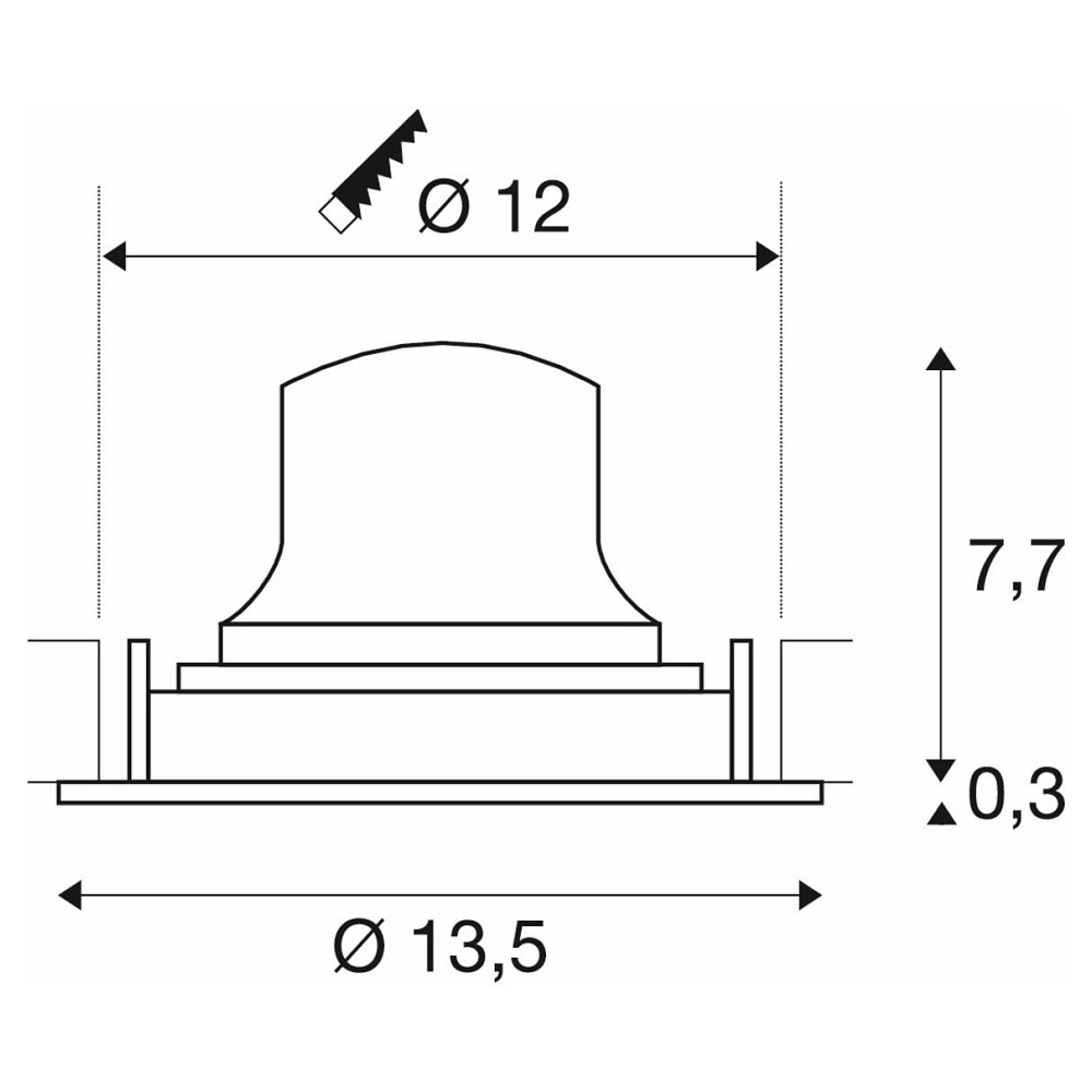 The LED recessed ceiling light NUMINOS® MOVE M from SLV impresses with its compact and round design, featuring a diameter of 13.5 cm and a height of 8 cm. With an installation depth of only 10 cm and an installation opening of 12 cm, the light can be easily and unobtrusively integrated into the ceiling. Despite its compact dimensions, it delivers an impressive brightness of 1800 lumens with a power consumption of only 12 watts.