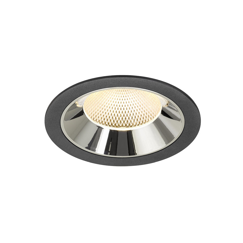 The LED recessed ceiling light NUMINOS® XL from SLV impresses with its powerful 24W LED technology and a luminous flux of 3600 lumens. The luminaire is available in chrome and black and is made of high-quality, painted aluminum, ensuring a long service life. With an installation depth of only 10.5 cm and an installation diameter of 14.5 cm, it easily adapts to a wide variety of ceiling types.