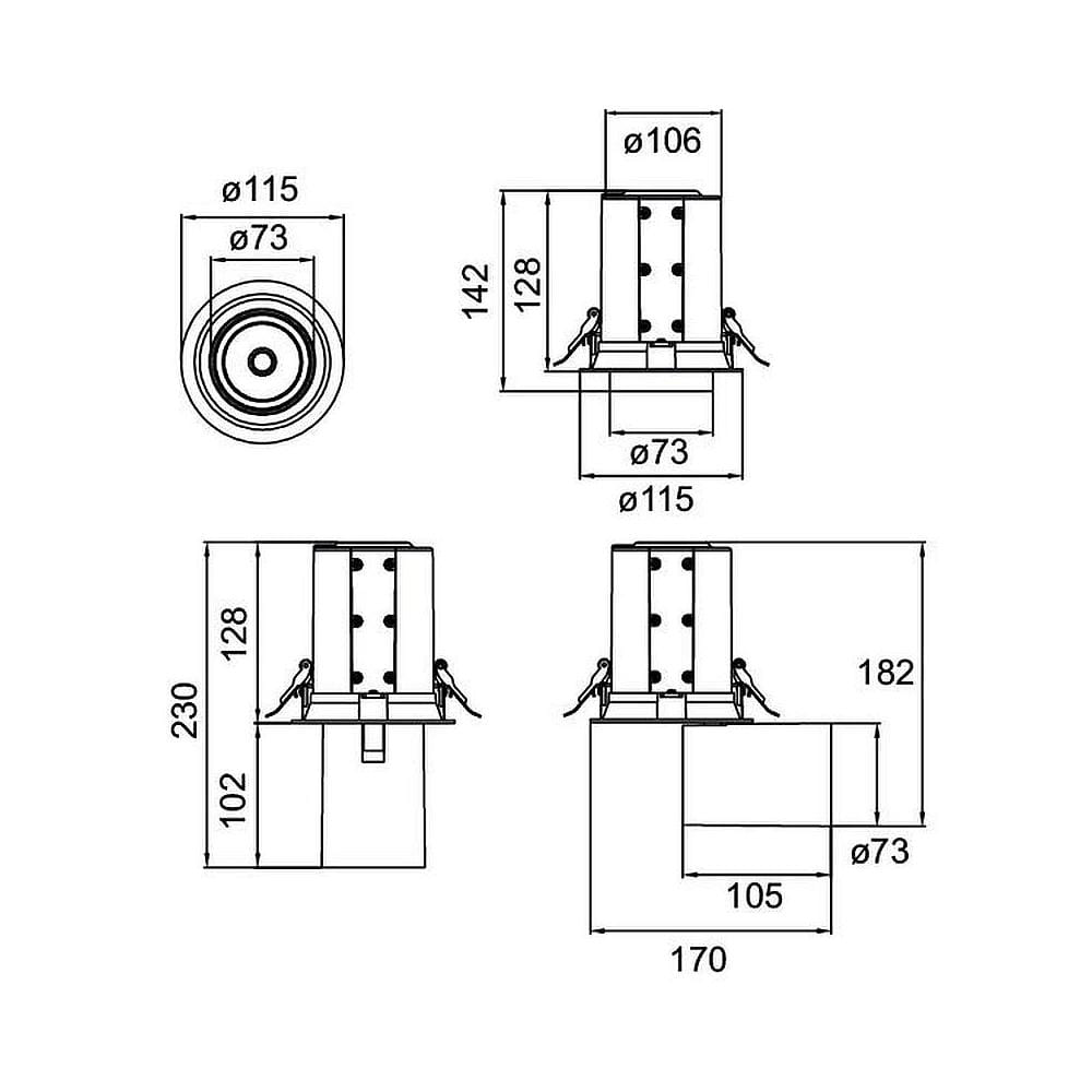 ceiling recessed luminaire TRAXX MIDI swivelling, rotatable, direct IP20, white dimmable
