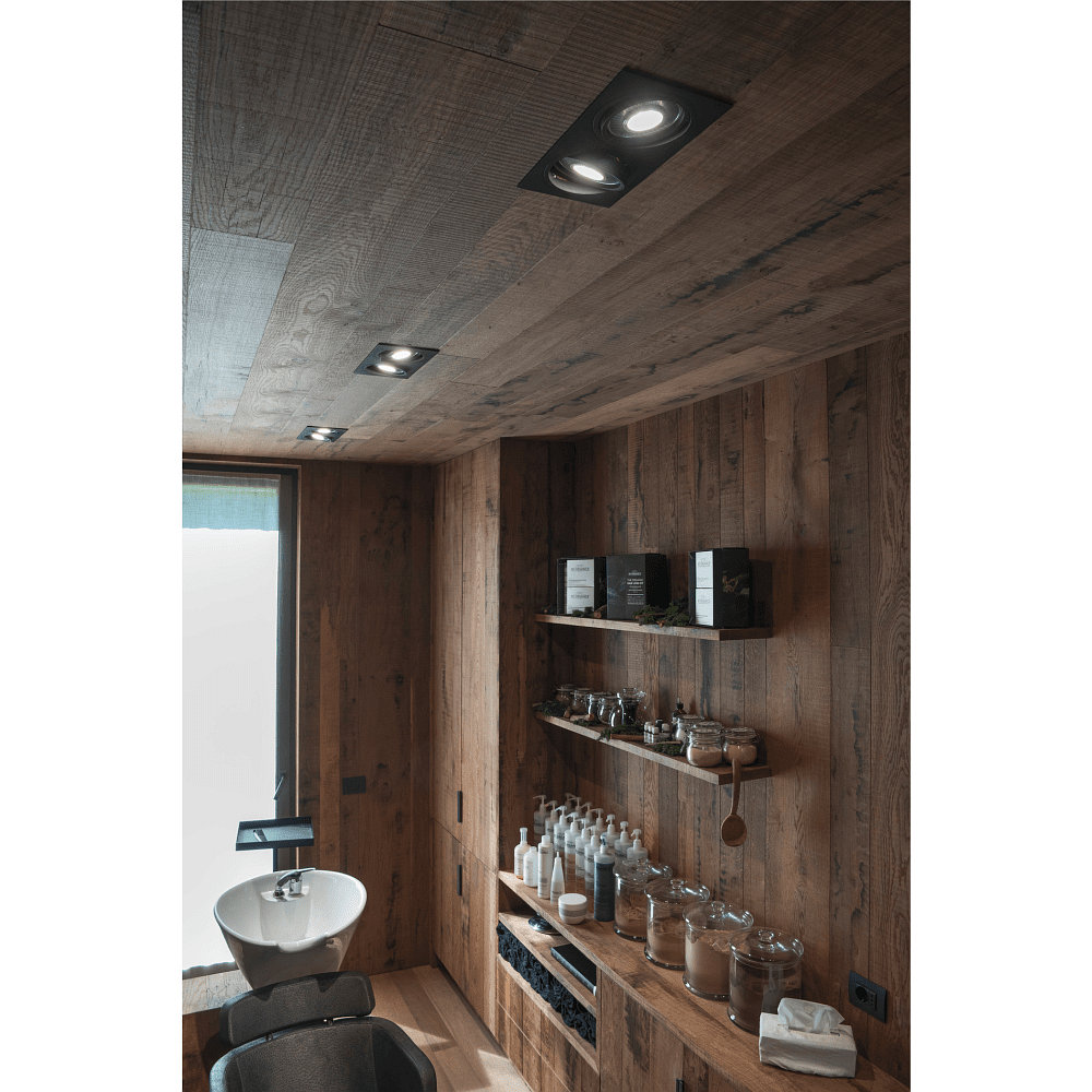 The recessed ceiling spotlight NEW TRIA ES111 2 SQUARE is suitable for indoor use and can be installed at a height above 2.5 m when using halogen bulbs. This restriction is lifted when using exclusively LED or energy-saving bulbs. With a swivel range of 30°, this spotlight offers flexible lighting options.
