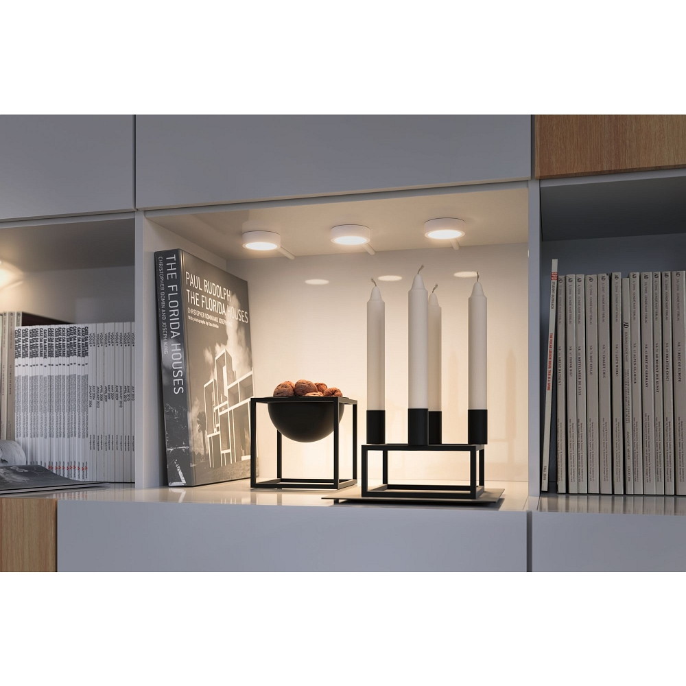 Thanks to the dimming function and gradual color selection, you can adjust the lighting according to your preferences. The Single Furniture Spot DISC can be controlled with the CLEVER CONNECT wireless remote control "SWITCH BOWL" (remote control not included).