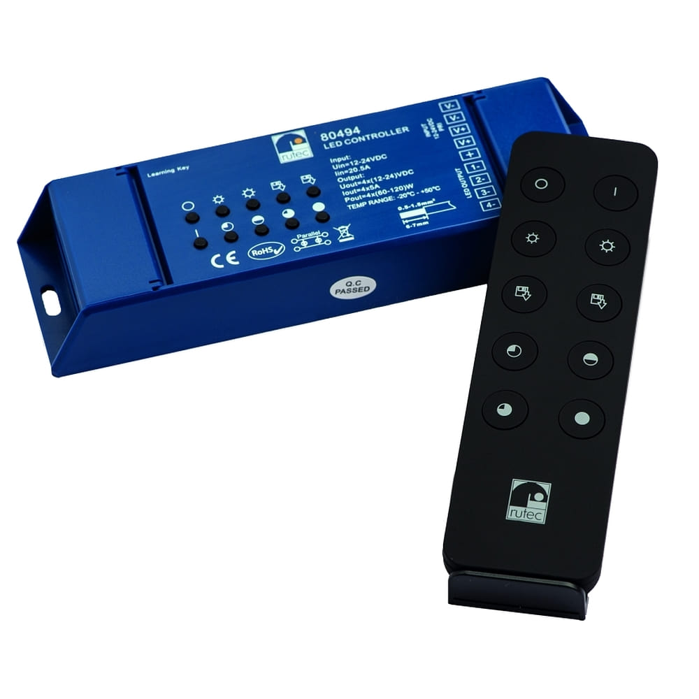 Rutec Projekt controller RF 12V/24V - 240W/480W - RGBW 4 channel, RGBW, with remote control, blue, black