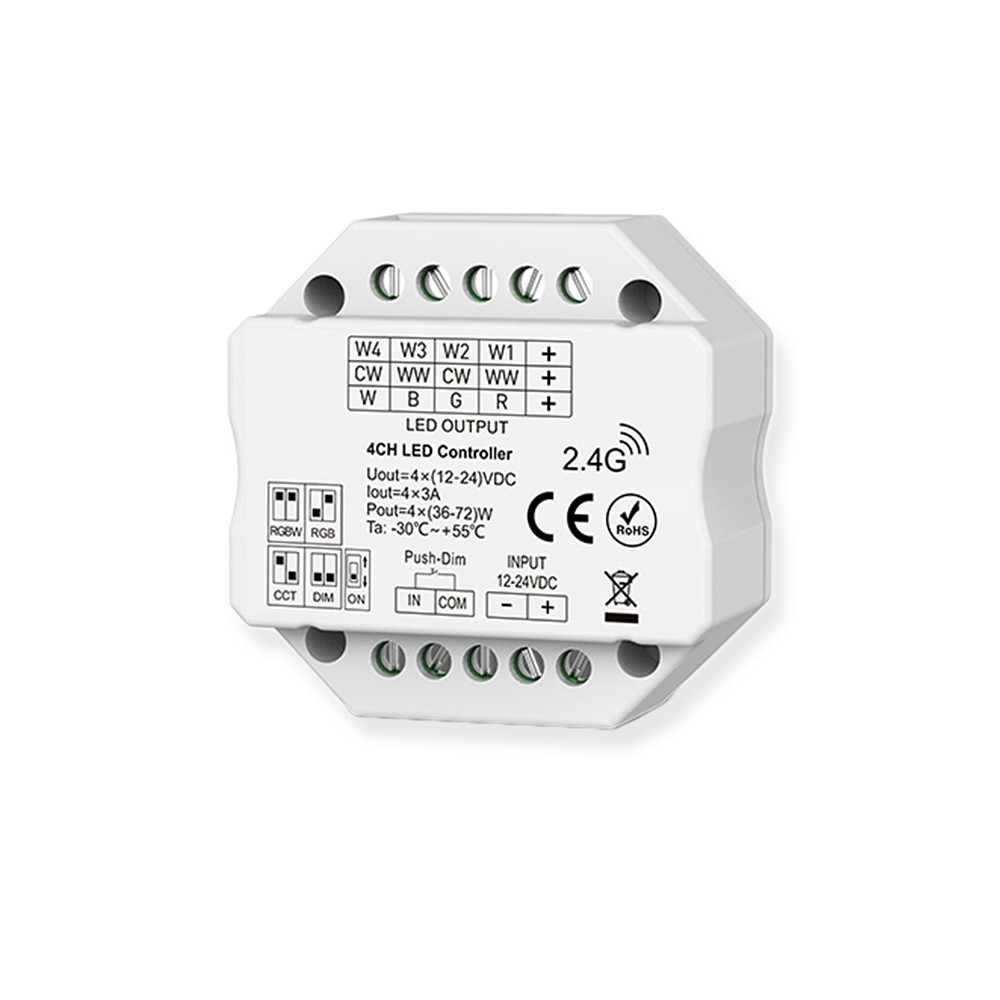 The PWM controller has a range of practical features that make controlling your lighting easier. With a range of up to 30 meters, you can conveniently control your lighting from a distance. In addition, the controller has a secondary input, a light value memory, and is compatible with motion detectors, presence detectors, timers, timers, radio buttons, and push buttons.