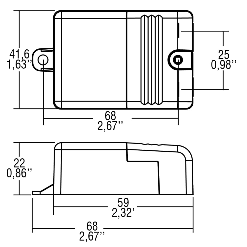 With a total size of L/W/H: 6.8/4.16/2.2 cm and a mounting opening circle Ø of 4.7cm, the LED converter BULL 6W 500mA HPFU from TCI fits into various lighting environments. The housing of the converter can be secured with screws and has input and output terminals on the same side for easy wiring.