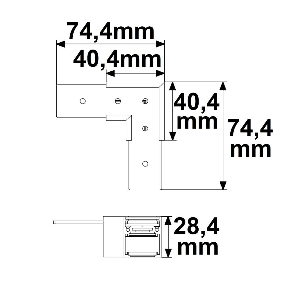 The corner connector accessory for the NV mounting rail TRACK48 FLAT is black in color and has dimensions of 7.44 x 7.44 x 2.84 cm. With this compact size, it seamlessly integrates into your lighting system and provides a harmonious look.