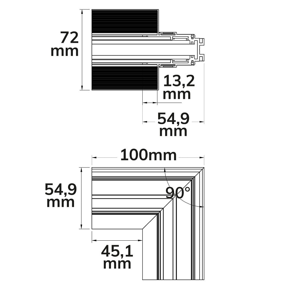 Please note that this accessory excludes operating devices and power rails. It is important to ensure that the corner profile is compatible with the corresponding system to ensure a smooth installation process.