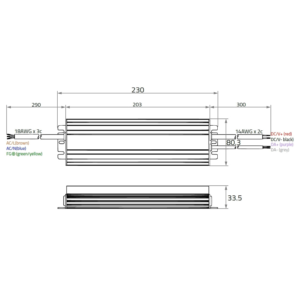 DALI dimmer DALI-2 DT6 24VDC 199W SINGLE COULOUR with open cable, 1 channel, aluminium