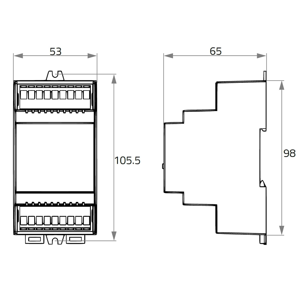 The dimming actuator does not include a display / LED display and a controller in the delivery scope, but they can be purchased separately. The power connection is made via a terminal block.