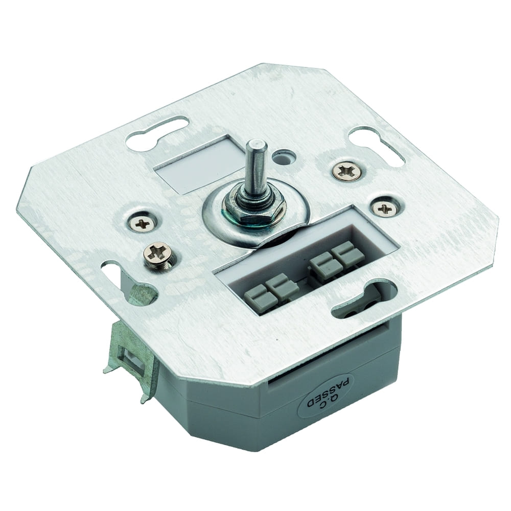 The recessed rotary potentiometer is operated by push and rotation. With a control current of 100mA and a cable cross-section at the terminal block of 1.0 - 4.0 mm², a safe and reliable installation is guaranteed. The device fits easily into a standard device box with a minimum depth of 3.2cm.
