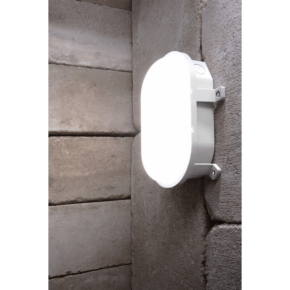 With a size of 12 x 16.5 x 6.5 cm, the LED moisture-proof luminaire SOTANO fits into almost any room. The oval shape and the robust housing made of impact-resistant polycarbonate make it a durable and resistant lighting solution.