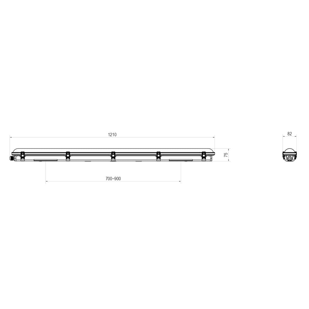 The damp room light is available in various lengths and power levels and can optionally be used as a pendant light with cable suspension. For modern building technology, it is also available with an integrated motion sensor or DALI bus for digital control. The replaceable LED light source as well as the device carrier with integrated fall protection complete the well-thought-out product design, ensuring safe and flexible operation.