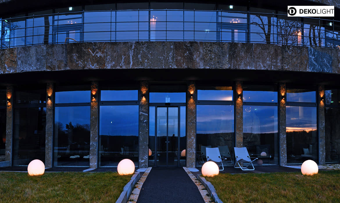 The sphere light has IP65 / IP44 protection class, which protects it from moisture and dirt. The resin material is UV-resistant and ensures a long-lasting appearance. The light is also equipped with an IP44 Schuko plug, allowing for easy installation.