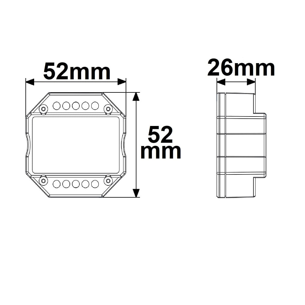 The dimmer is designed in a timeless matte white finish and is made of high-quality plastic. The compact dimensions of 5.2 x 2.6 x 2.6 cm allow for discreet integration into your space.