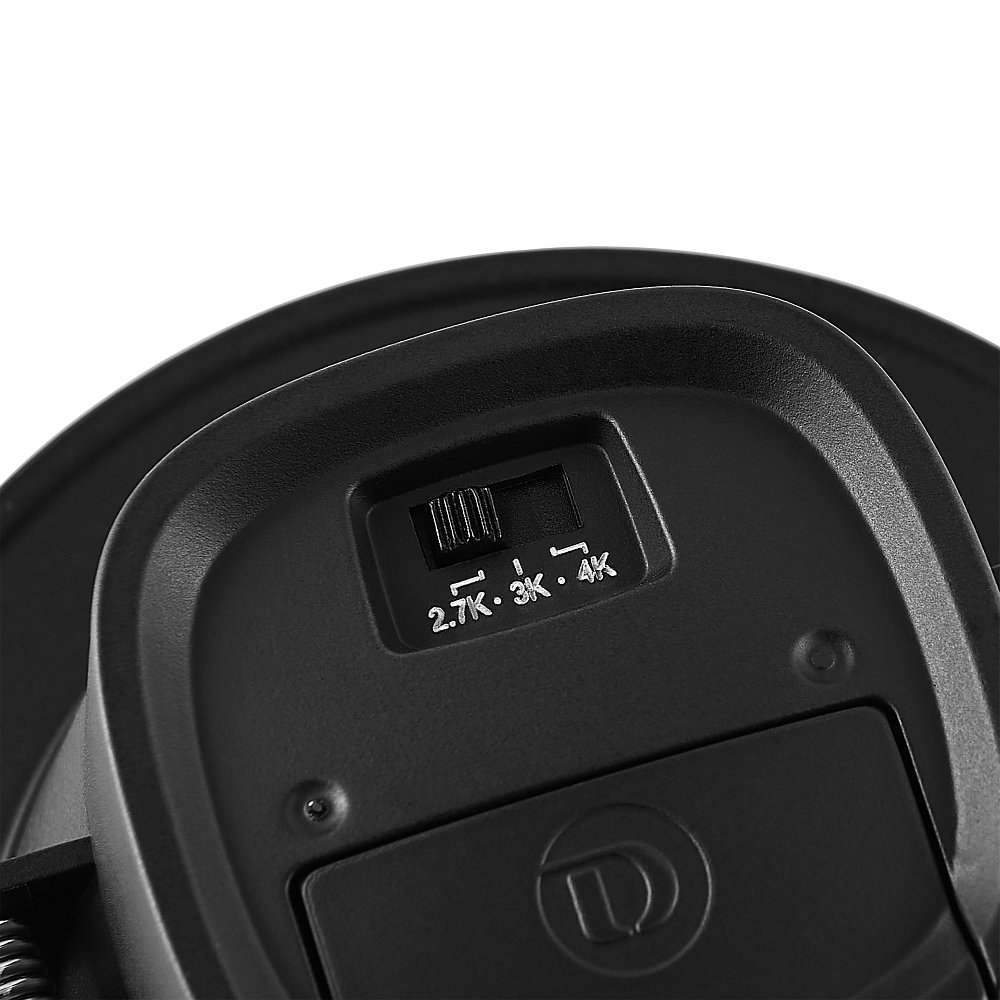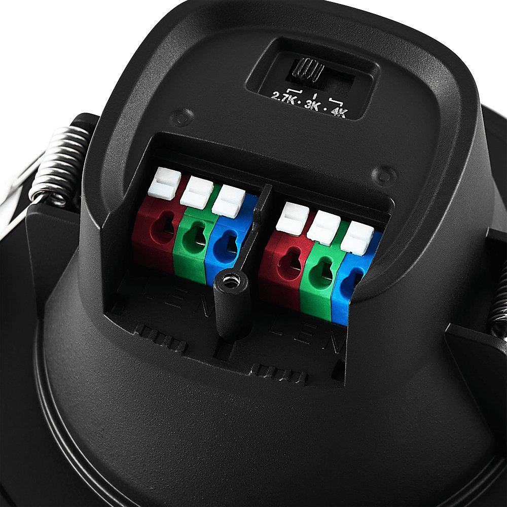 This downlight offers three adjustable color temperatures: warm white (2700K), neutral white (3000K), and daylight white (4000K). This allows the light color to be flexibly adapted depending on mood or requirement. With a high color rendering index of 90 Ra, colors are rendered very naturally and vividly, which is especially advantageous in living and working areas.
