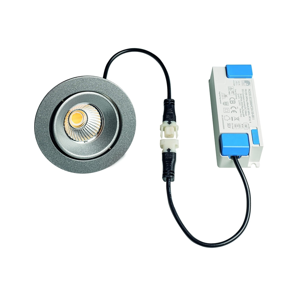 downlight GAIL Plug&Play round, swivelling IP65, powder coated, silver dimmable
