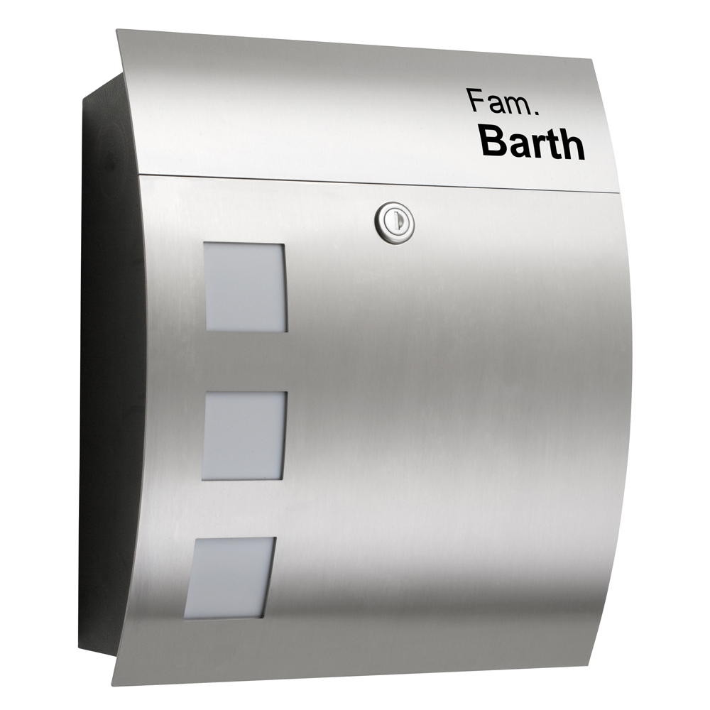The engraving is specially made for mailboxes made of stainless steel and opal glass. Stainless steel is known for its resistance to corrosion and mechanical stress, while opal glass with its matte surface provides a stylish contrast. The combination of these materials guarantees a high-quality look and a long lifespan of the engraving.