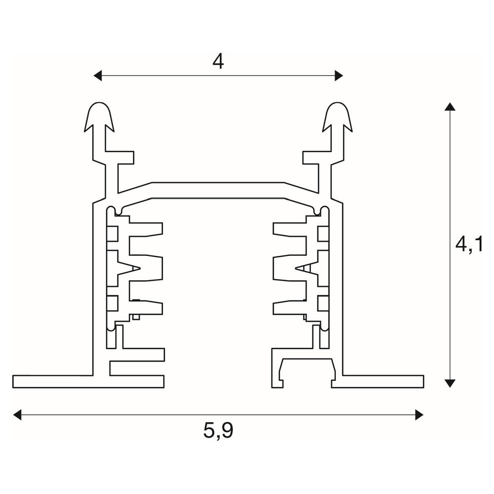 The recessed track can be easily hung on spring clips with arrow-shaped profiles. With a load capacity of up to 4 kg per meter, various lights and accessories can be securely attached.