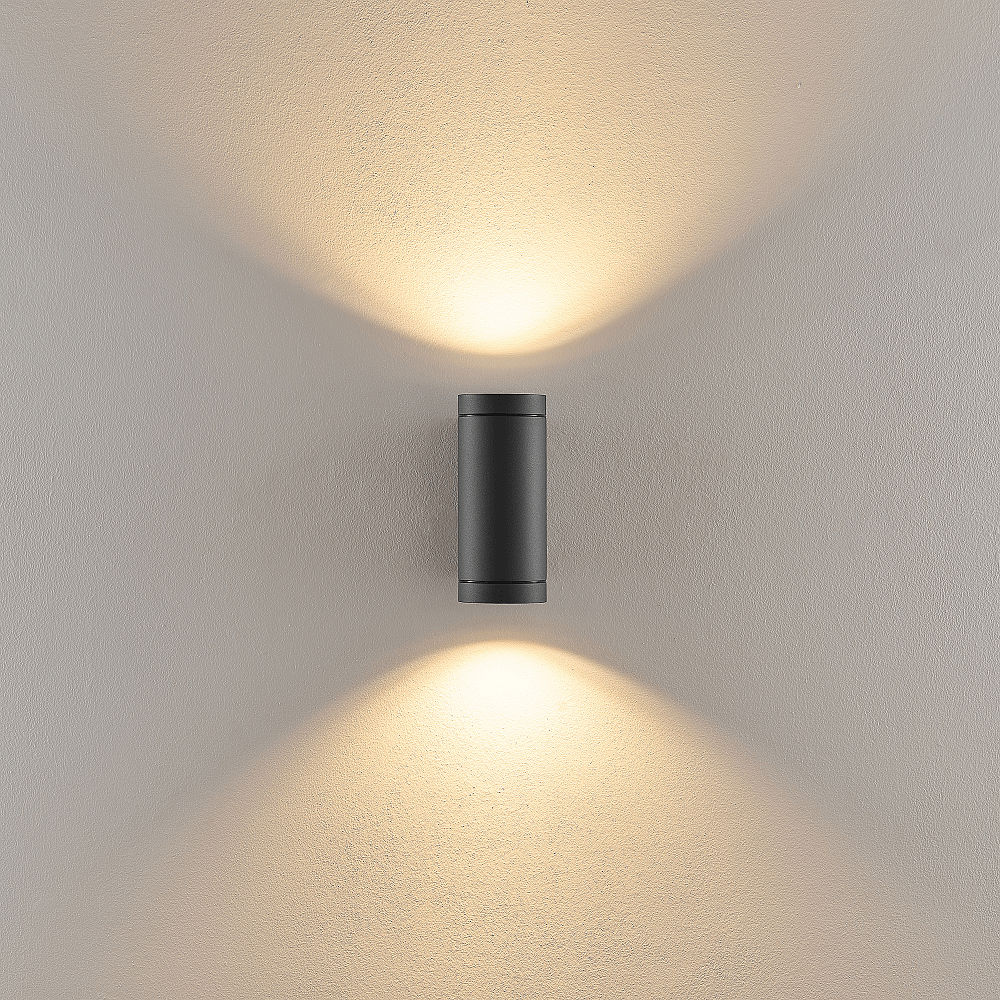 facade spotlight SHORELINE PRO GU10 ROUND UP&DOWN 2 flames, cylindrical, with lamp socket GU10 IP65, dark grey