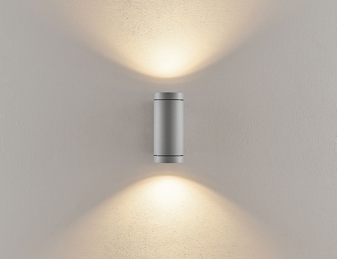 facade spotlight SHORELINE PRO GU10 ROUND UP&DOWN 2 flames, cylindrical, with lamp socket GU10 IP65, light grey