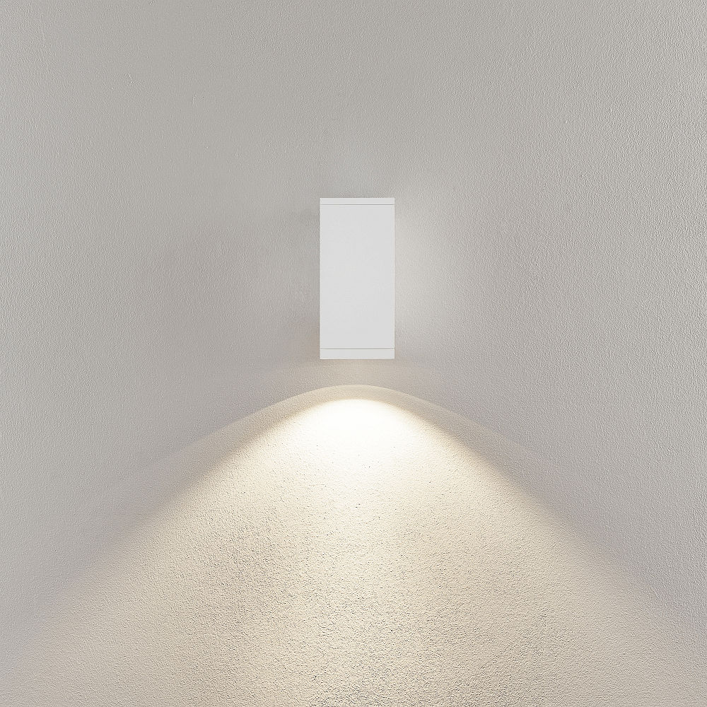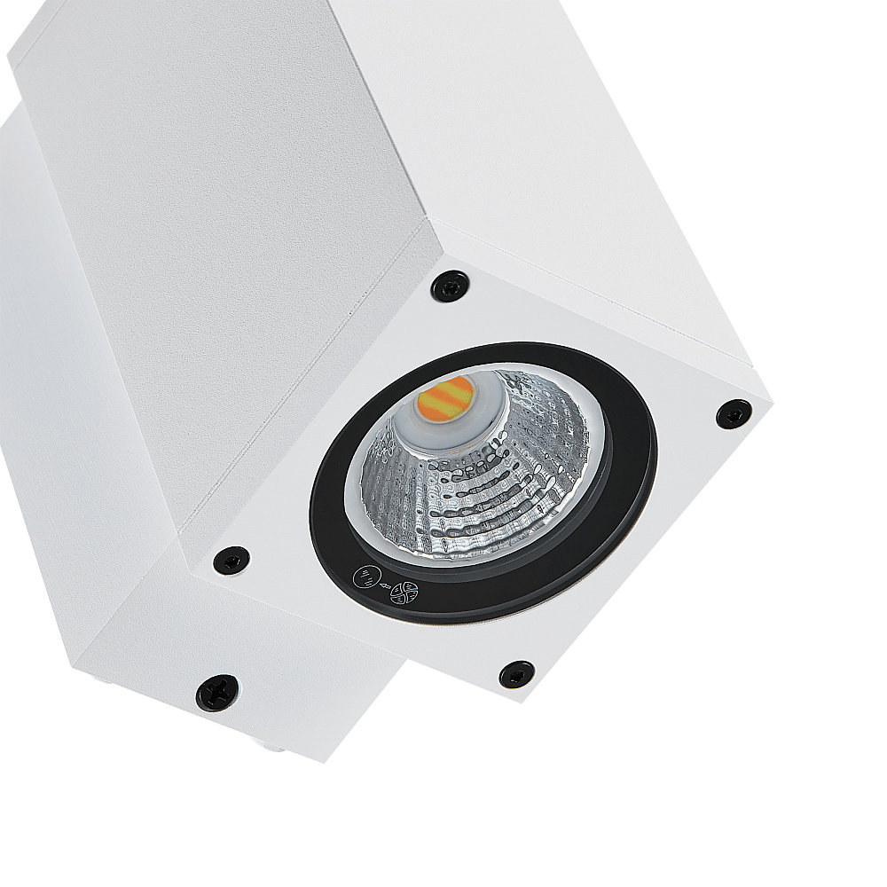 This wall light is designed as a surface-mounted fixture with a compact cuboid body (7 x 7 cm) and features one-sided downward light emission with a beam angle of 30 degrees. Installation is carried out via a detachable mounting plate, which is securely fastened using a plug connection and locking screw. Thanks to preparation for row installations, multiple luminaires can be easily connected with just one cable, significantly reducing installation effort.