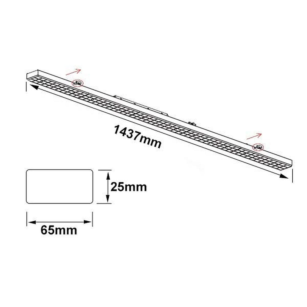 The LED module has a beam angle of 30° and a power consumption of 75W. The size is L: 143.7 cm and the material is aluminum. The average lamp lifespan is 36000 hours, ensuring a long product lifespan.