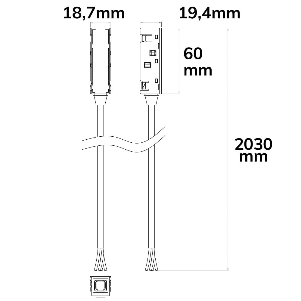 The accessories for the NV power rail TRACK48 allow for power supply with a 200cm long connection cable. With a maximum load capacity of 6A and a 4-pole connection (+|-|DALI+|DALI-), this product is ideal for powering your lighting systems.