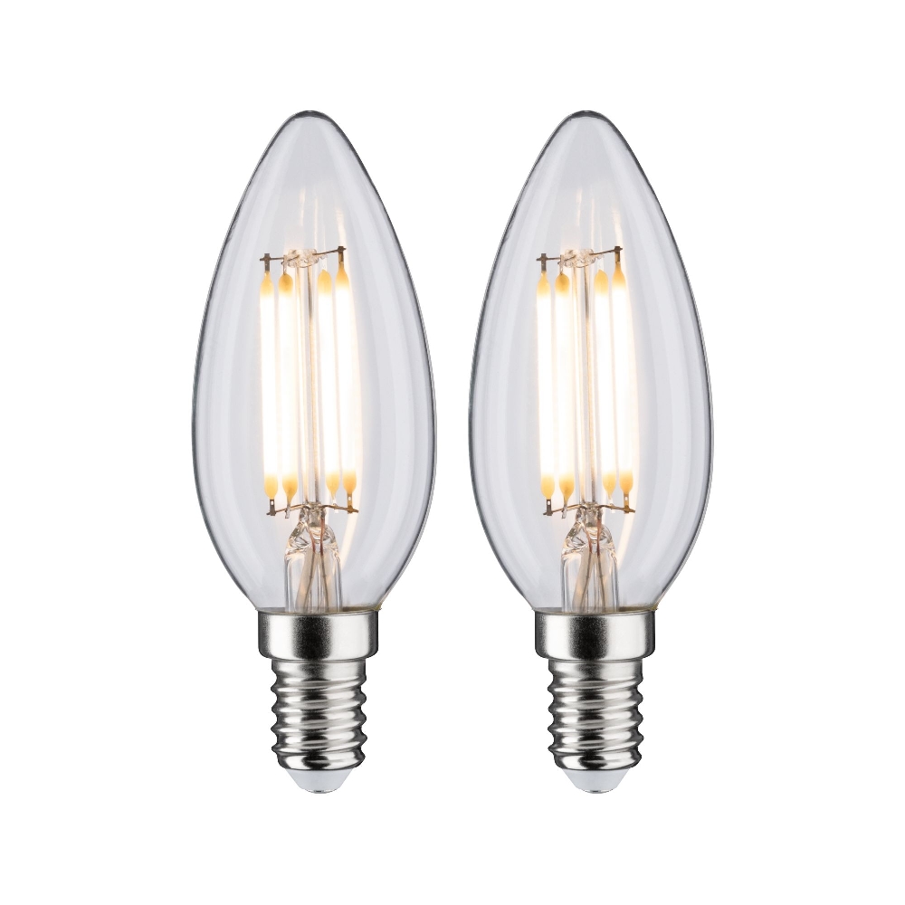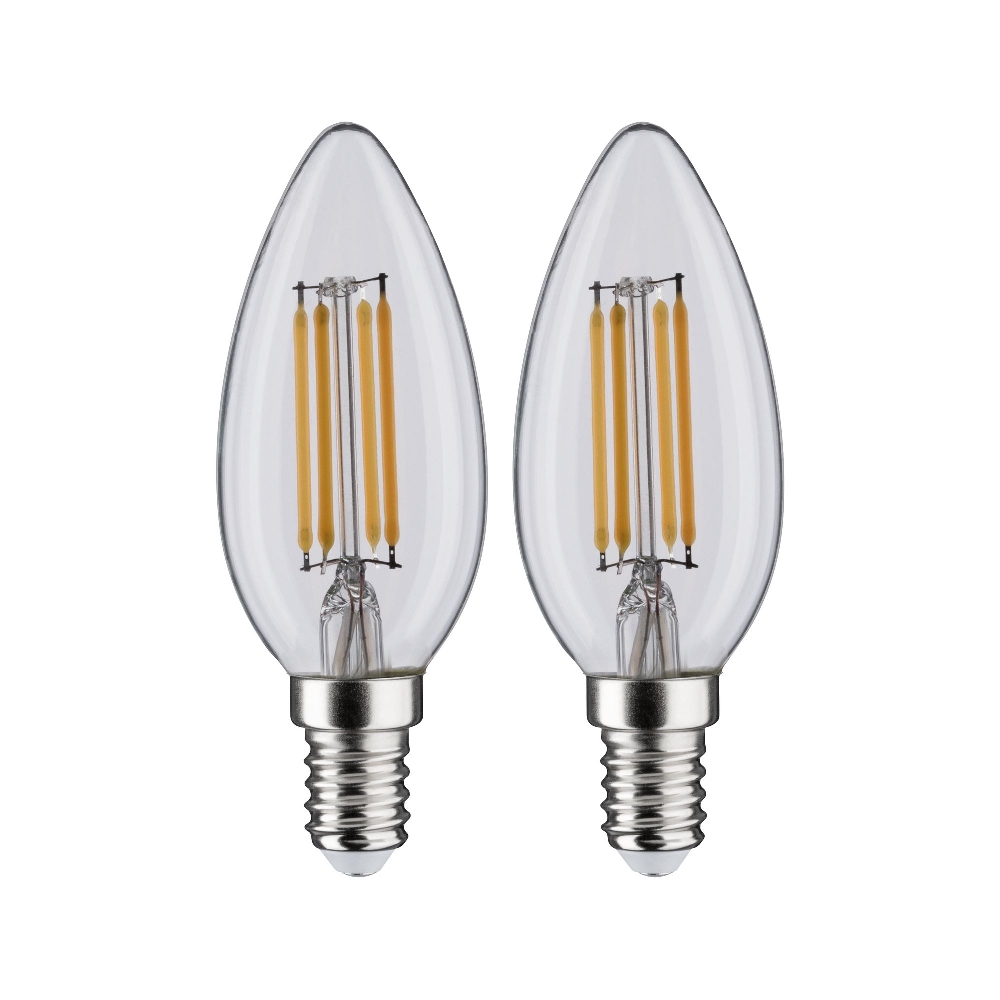 The 2-pack LED Filament Candle Shape C35 from Paulmann is an energy-saving lighting solution for your home. With a power of 4.5W and a brightness of 470lm, these lamps provide a pleasant illumination equivalent to a traditional 40W incandescent bulb.