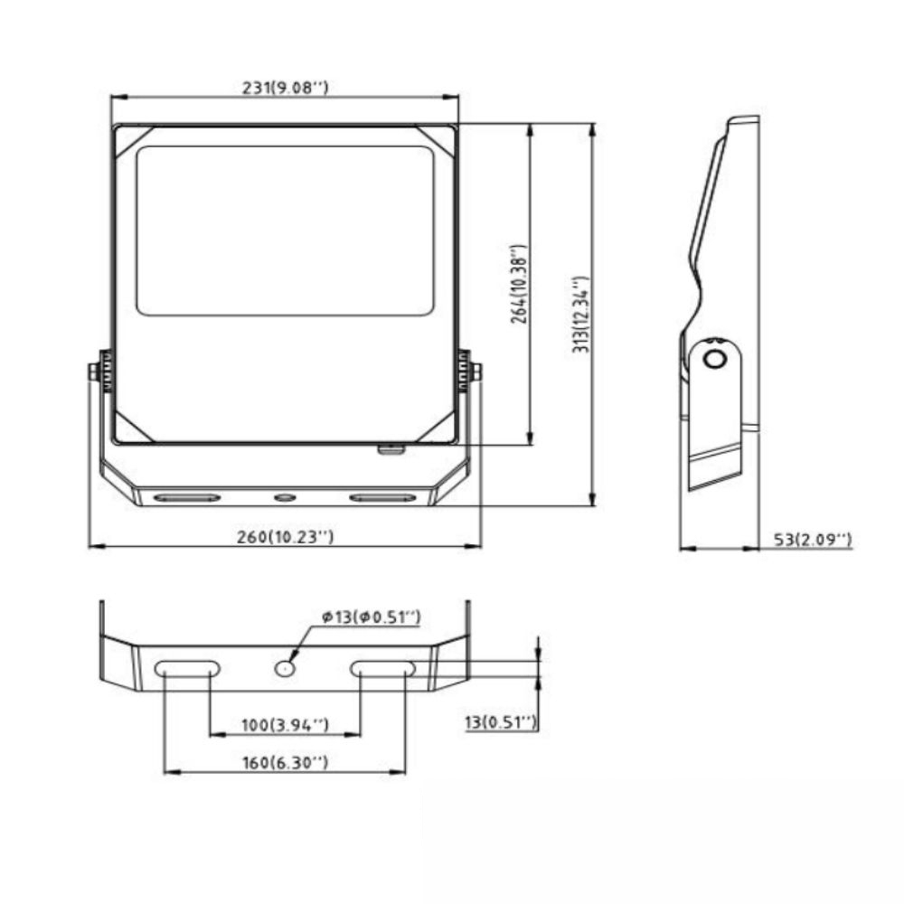 ISOLED floodlight HEQ 100W swivelling, symmetrical beam direction IP66, anthracite