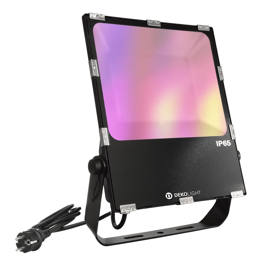 The LED floodlight RF-SMART FLOOD RGB+CCT from Deko-Light is a powerful spotlight that is suitable for both general lighting and mood lighting in outdoor areas. With a power consumption of 100W and a light output of 10000lm, it provides bright and uniform illumination.