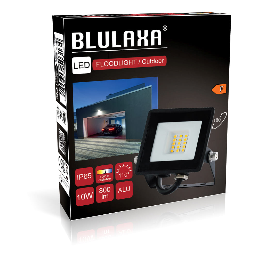 The LED floodlight from Blulaxa has a power of 10W and a luminous flux of 800lm. This provides a bright and uniform illumination in your space.