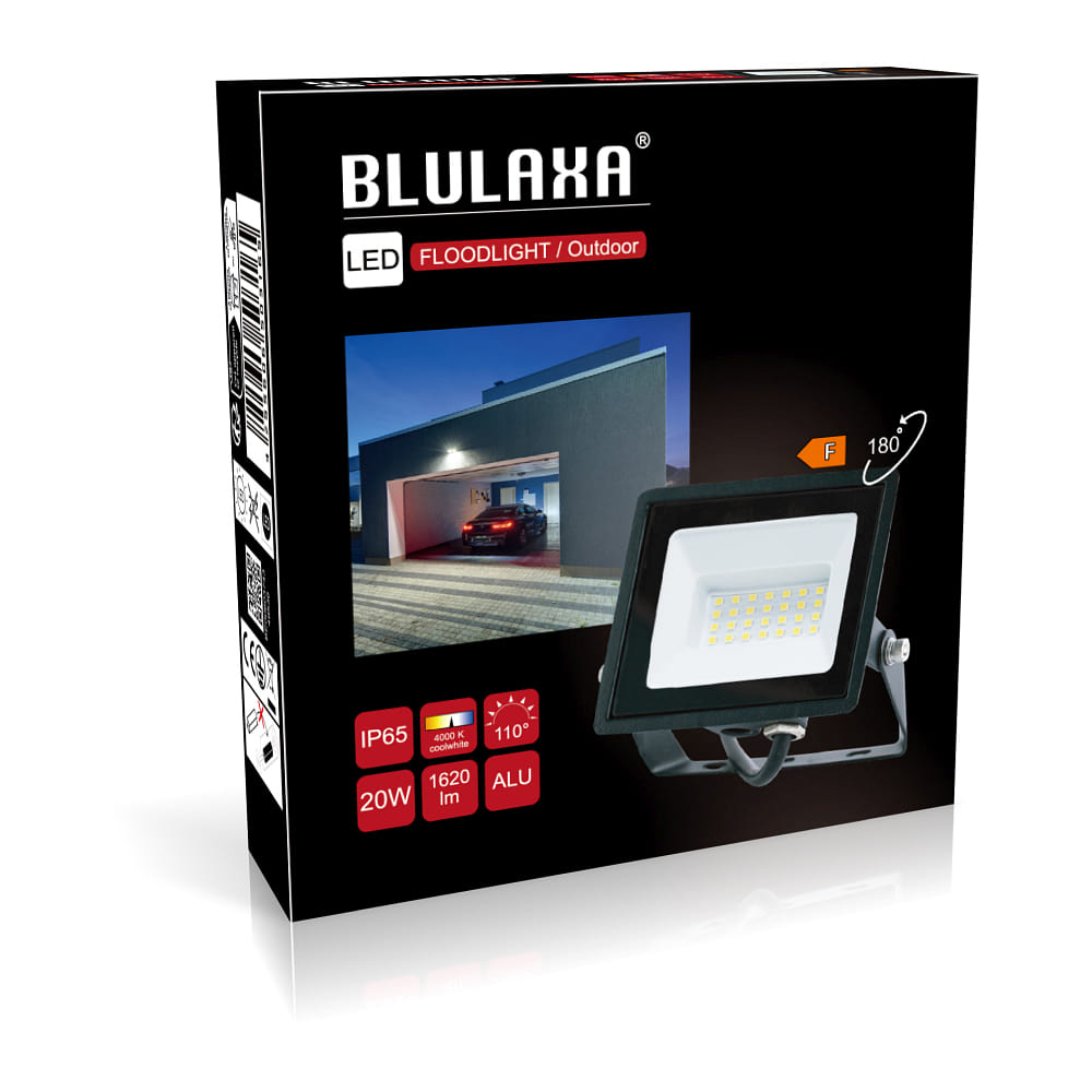 The LED floodlight from Blulaxa offers excellent illumination with a wide beam angle of 110°. With a power consumption of 20W and a luminous flux of 1620lm, it provides efficient lighting in various applications.