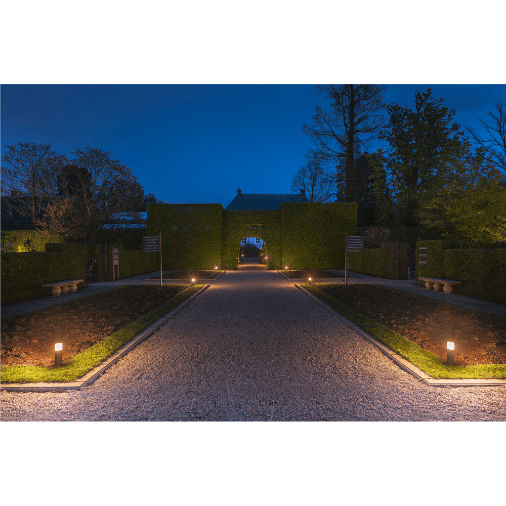 With its protection class 1 and ground installation, the GRAFIT lamp is perfect for outdoor use. It can be used as a floor lamp, bollard light, pathway light, or decorative light, and can be dimmed with the appropriate accessories. Its minimalist design and high-quality craftsmanship make it a standout feature in any garden.