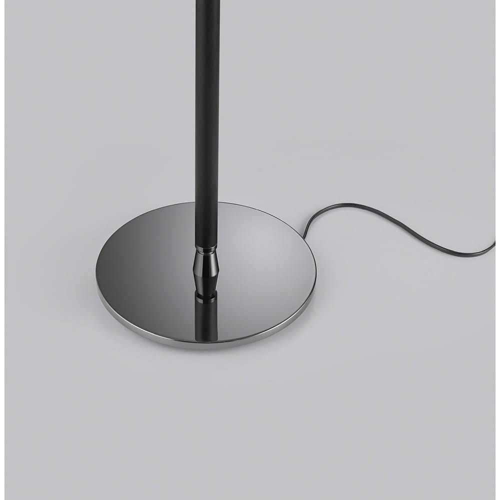 The sophisticated design of the OPPO floor lamp in matte black and black chrome adds a stylish touch to your living space. The black fabric shade completes the overall look and ensures a pleasant light distribution.
