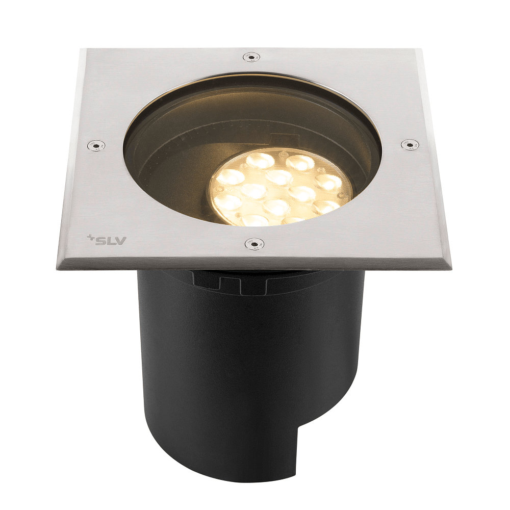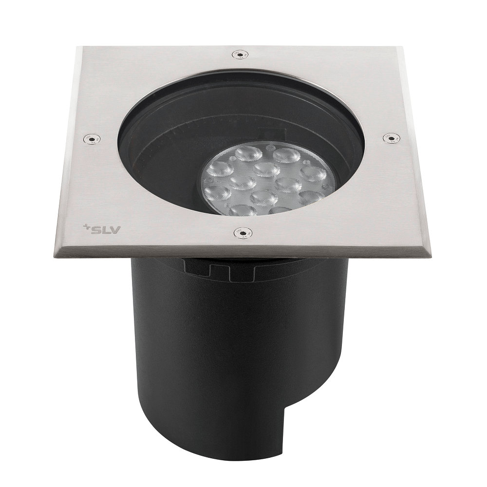 The scope of delivery includes the luminaire, a connection box, connection cable, and through-wiring; the controller, dimmer, and installation pot are available separately. The luminaire is crafted in a stainless steel finish with aluminum and glass materials. In addition to asymmetric light distribution, the model is also available with symmetric light output. For individual lighting solutions, SLV also offers various sizes and trim shapes to suit different requirements and applications.
