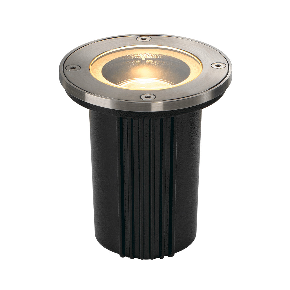 The DASAR EXACT in-ground light from SLV is characterized by its high durability and functionality. Made from high-quality stainless steel 316 and glass, this luminaire is particularly resistant. Weighing 1.056 kg and capable of bearing loads up to 2000 kg, it is ideally suited for areas where stability and safety are required. Its round shape and compact size, with a diameter of 11.6 cm and an installation depth of 17 cm, allow for discreet and elegant integration into various environments.