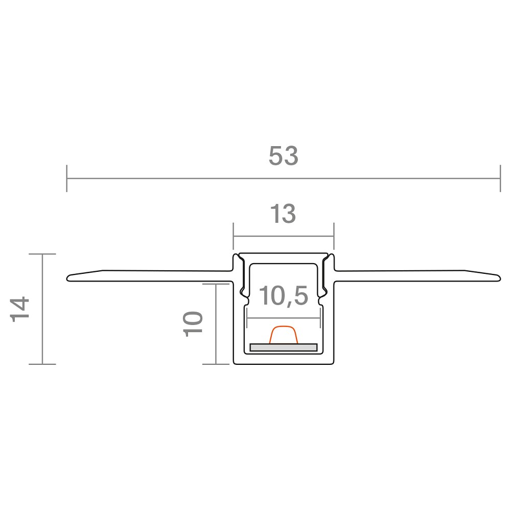 Flush mounted profile 10 - for LED Strips up to 1.05cm width, rimless, incl. matt flush cover, length 100cm