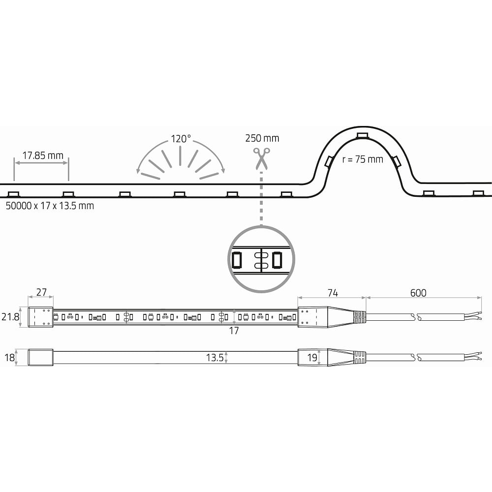 fully siliconised LED strip VARDAFLEX ECO AC - 50M / 1.7CM switchable white