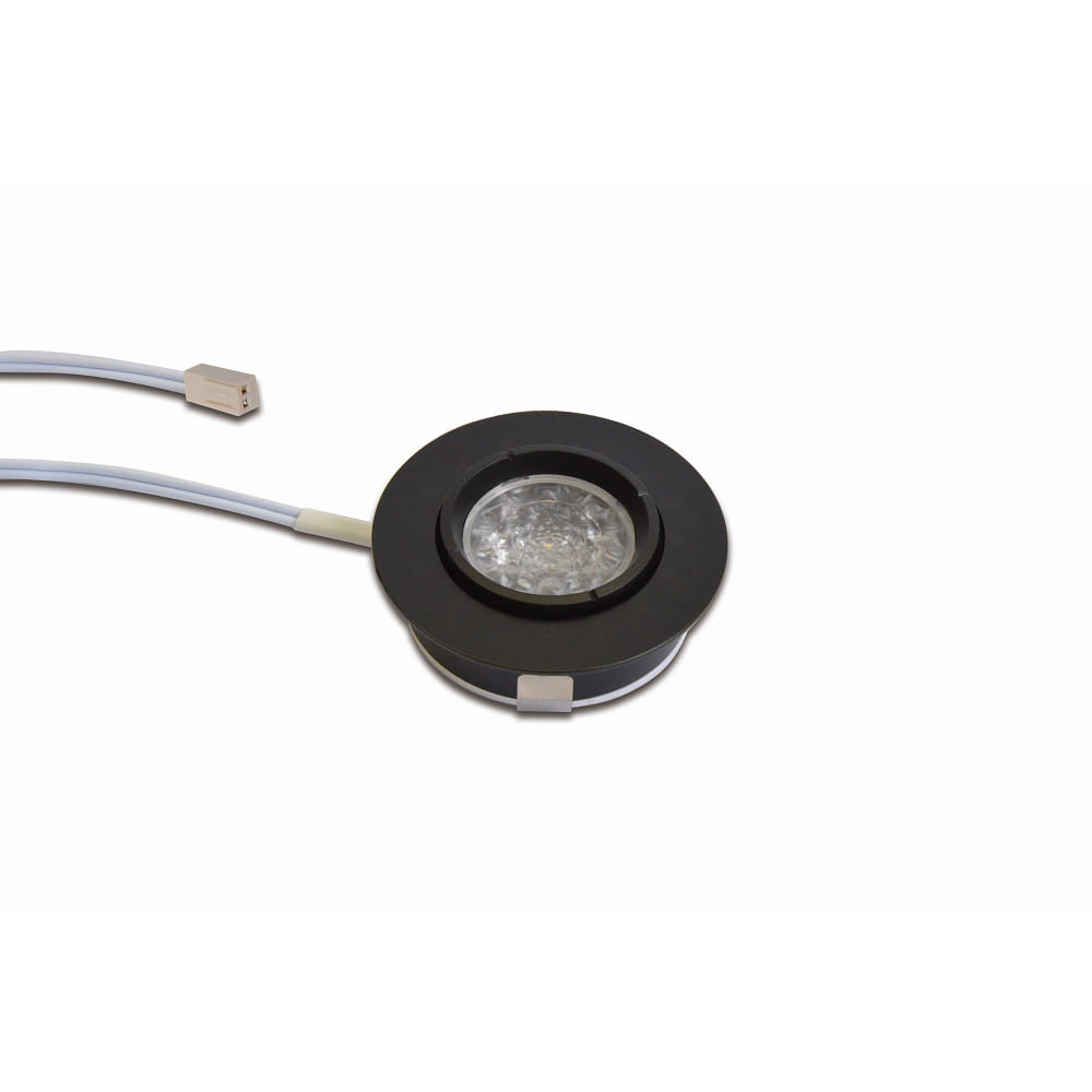 The LED Furniture Recessed Light AR 45 ZOOM can be quickly and easily mounted with snap hooks, alternatively, mounting with an optional mounting spring is also possible. The light comes with a 250cm long connection cable including a Hera LED 24 plug. For operation, an LED driver is required, which is voltage-controlled and has a Hera LED 24 plug socket.