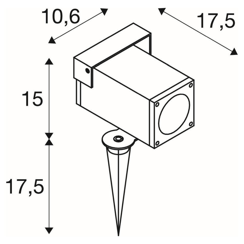 The SLV ground spike light THEO BRACKET SP QPAR51 is a square light in anthracite, suitable for outdoor use. With dimensions of 10.6 x 15 x 17.5 cm and a weight of 1 kg, it is compact and easy to handle. The ground spike is 17.2 cm long, allowing for stable installation in the ground.
