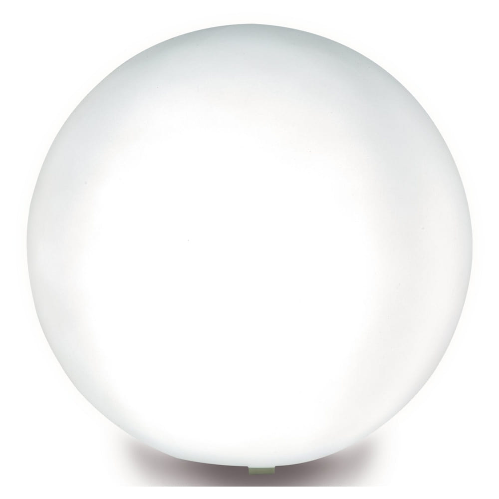 The light ball has IP44 protection class and is made of UV-resistant plastic. It can be operated with LED or halogen bulbs and is equipped with an E27 socket. The connection cable is 300 cm long, and the ground spike and IP protection contact plug are included.