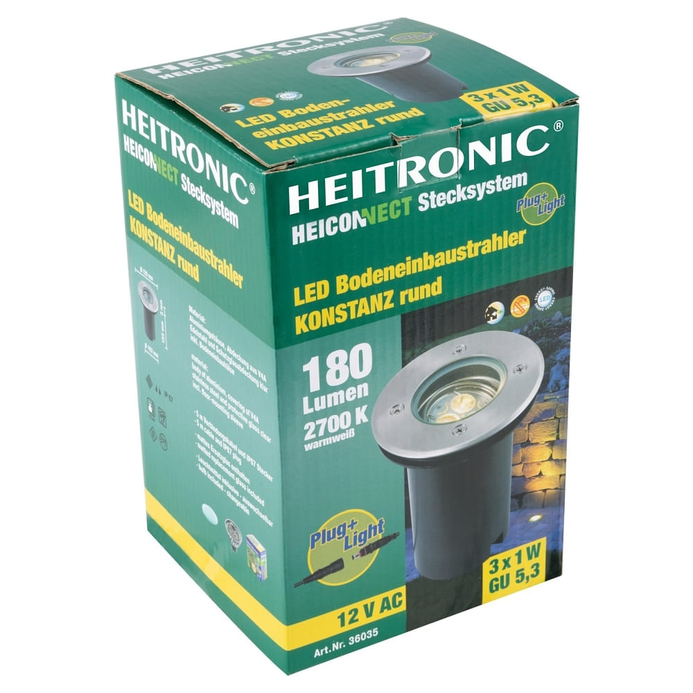 Heitronic LED Floor recessed spot KONSTANZ, model, GU5,3, 3W, warm white, round