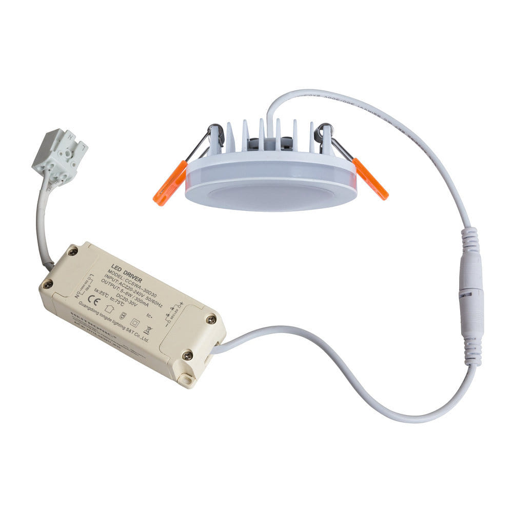The downlight is made of aluminum and plastic, ensuring a sturdy and durable construction. Thanks to the recessed installation method, installation is straightforward and can be done quickly. The connection cable is 16cm long and the LED driver is included.