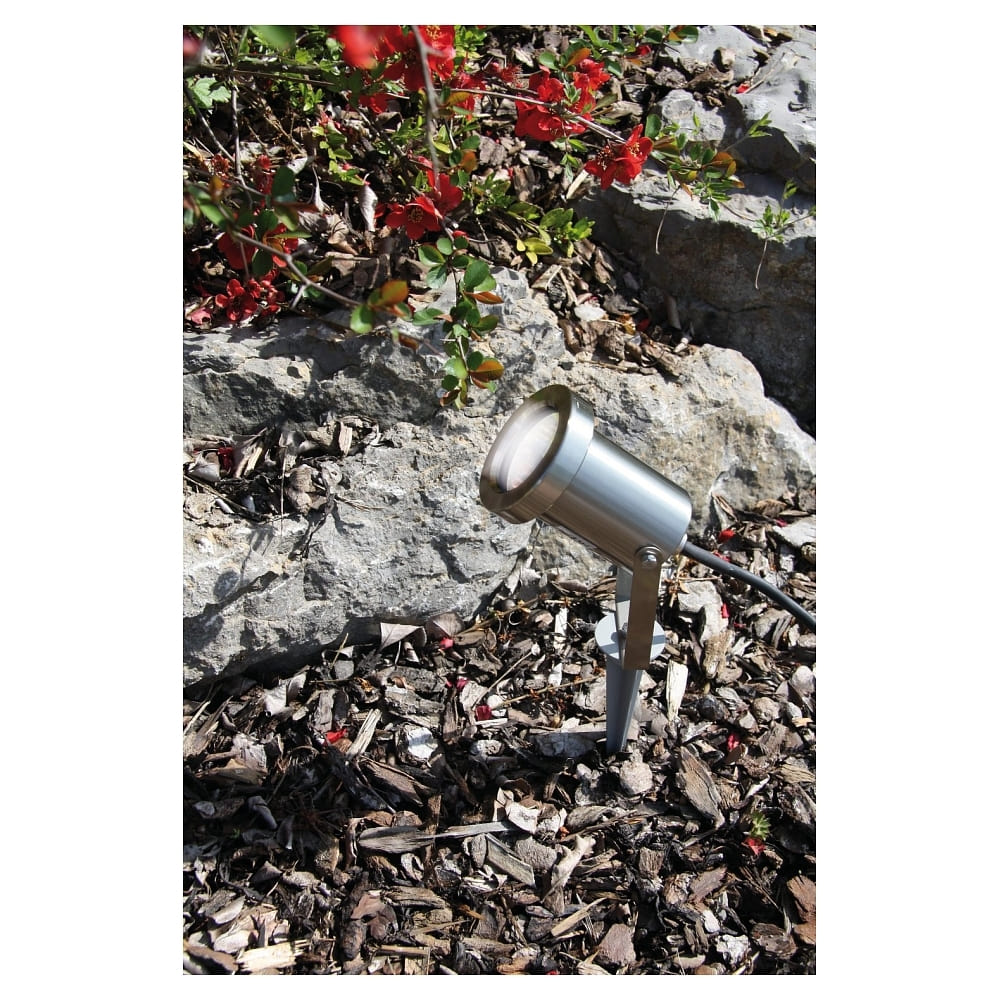 The ground spike spotlight is equipped with a GU10 QPAR51 bulb with a maximum power consumption of 3.5W. This LED bulb can be replaced if needed. The spotlight offers the option to adjust the light distribution directly and is dimmable when using dimmable bulbs.