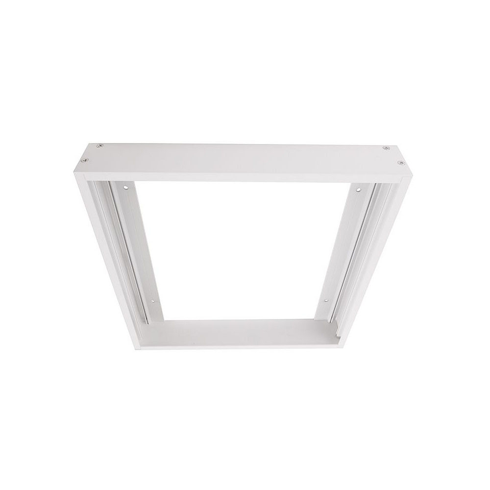 The mounting frame is finished in traffic white, giving it a modern and unobtrusive appearance. This neutral color blends harmoniously into various room concepts and emphasizes the sleek design of the LED panel. The minimalist design ensures the frame is barely noticeable visually.