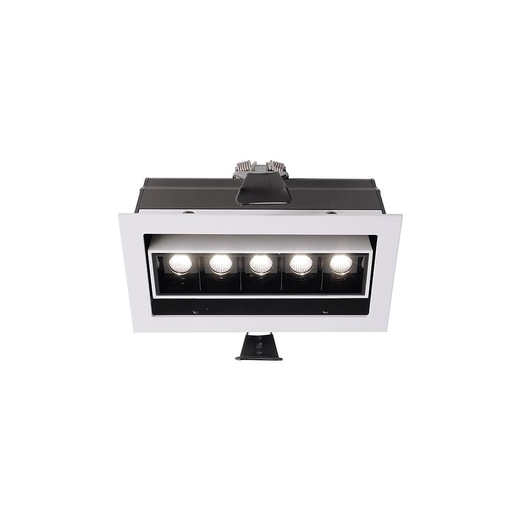 Thanks to its dimmability, the brightness of the light can be adjusted as needed. The swivel range of 90° allows for flexible light direction. The recessed ceiling light is also equipped with a fixed LED module and can be dimmed using an optional controller.