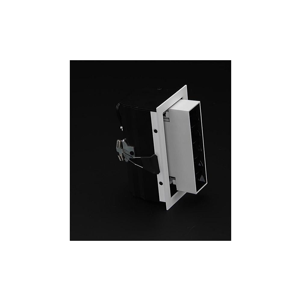 The recessed ceiling light has dimensions of 15.5 x 7.2 x 8.3 cm and weighs 0.65kg. It features an aluminum die-cast housing and a color rendering index of over 90Ra. With an average lamp lifespan of 30000 hours and an energy efficiency class of G, it is a durable and efficient lighting solution.