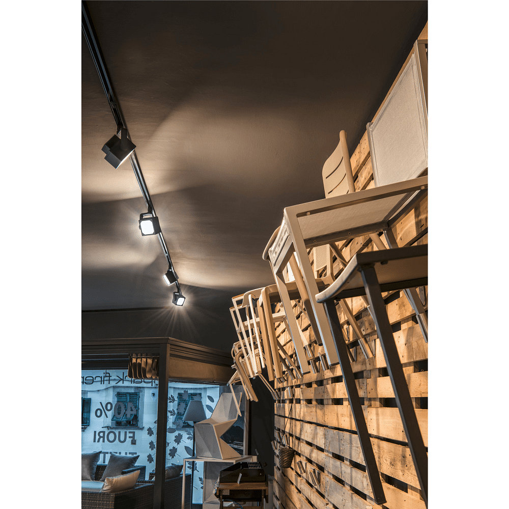 The 3-phase spotlight is made of high-quality aluminum, providing not only an appealing appearance but also a sturdy construction. With protection class 1 and IP20 protection rating, it is ideal for indoor use on ceilings and walls.
